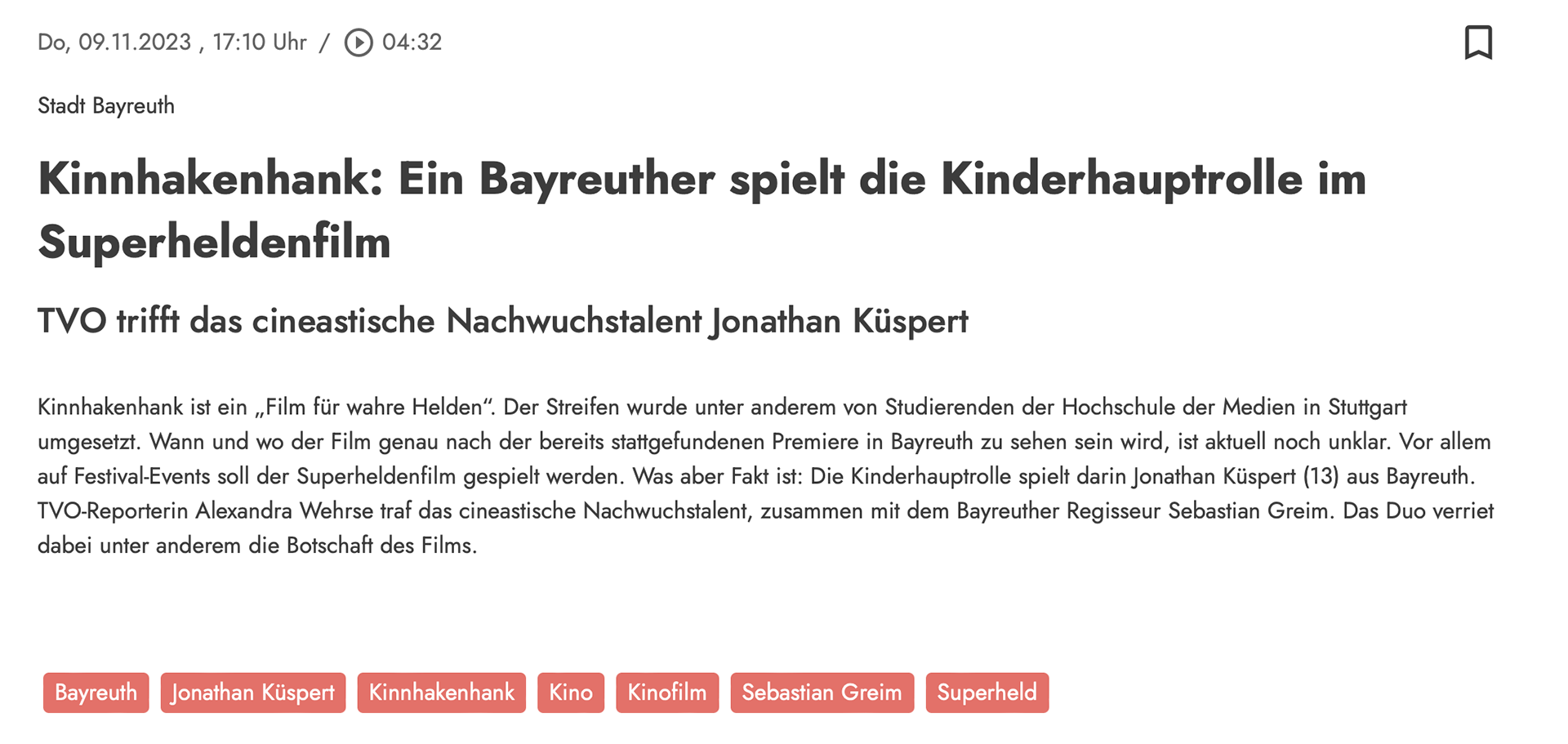 November 2023: TV Oberfranken berichtet über Kinnhakenhank